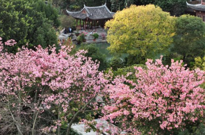 查看12月5日,福建福州黎明湖公园五彩斑斓,构成浓墨重彩的初冬画卷,美不胜收,成为市民和游客休闲的好去处。(无人机照片)中新社记者 张斌 摄12月5日,福建福州黎明湖公园五彩斑斓,构成浓墨重彩的初冬画卷,...