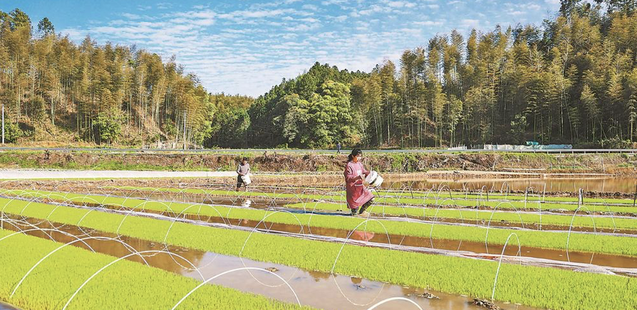 查看4月1日,在建宁县溪口镇枫元村高标准制种基地,农户趁着晴好天气为早制母本秧苗施肥。近年来,当地推广育秧盘育秧,育秧效率大幅提升,传统一亩秧地仅能供应12至15亩大田,育秧盘育秧可供应80亩大田且秧苗规...