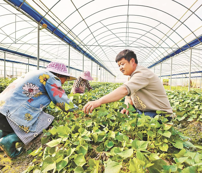 查看连城县一处蔬菜大棚内,农户在管护新品种甘薯。黄水林 摄春分时节,龙岩市农业科学研究所甘薯种质资源圃内生机盎然:恒温环境中,甘薯苗吐露新绿,科研人员穿行其间,细致观察并记录300多份甘薯种质资源的生长表...