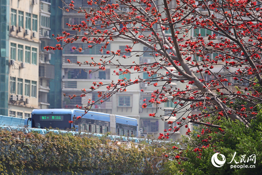 厦门瑞景木棉红花争奇斗艳。人民网记者 陈博摄
