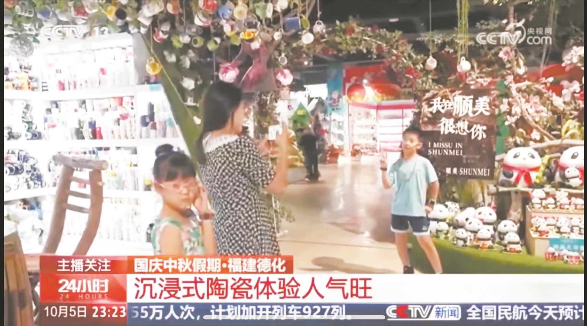 在德化,传承千年的“中国白”正焕发崭新生机。中央广播电视总台福建总站的视频报道《德化陶瓷工业游“火出圈” 假期消费突破1亿元》透露了一组振奋人心的数据:假期前四天,德化陶瓷工业游每天接待游客约1万人次,消费额突破1亿元——文化的力量,在这一刻被量化为实实在在的经济活力。10月5日,央视新闻频道《24小时》栏目报道了德化县陶瓷主题旅游的盛况,老瓷器厂改造的文旅空间里,游客们不仅能见证“泥土蜕变为瓷”的奇妙过程,还能亲手拉坯、彩绘,将独一无二的纪念品带回家。同日,中文国际频道播出《中国风世界潮:传承创新让世界爱上“中国白”》,用近四分钟讲述了德化白瓷的全球化故事。