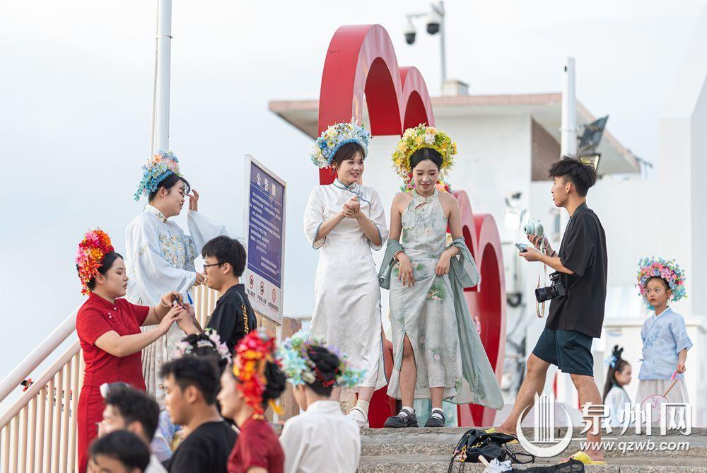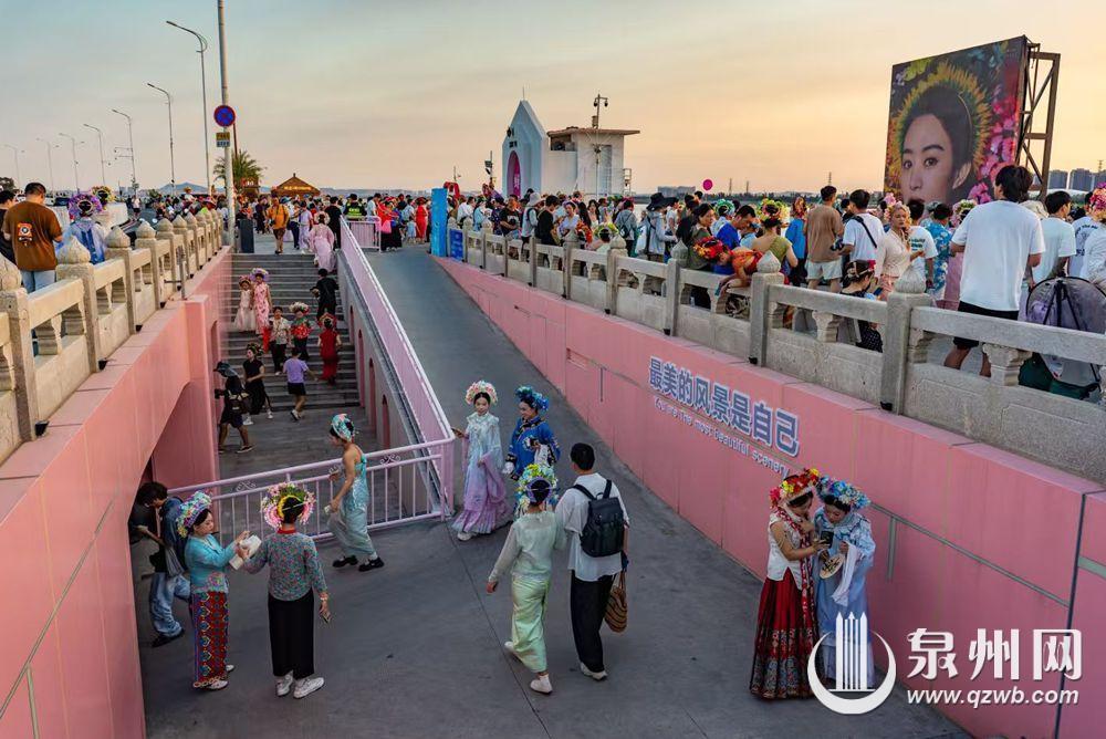 10月2日傍晚,余晖浸染晋江水,丰泽蟳埔码头变身露天影棚,八方游客头戴簪花围,身着华服,在温柔暮色中定格簪花浪漫。江天为幕,清风徐来,造型多变,笑靥如花,快门声中,传统与现代相拥,织就一幅流动的海丝风情画。(融媒体记者:陈起拓 文/图) 上一篇