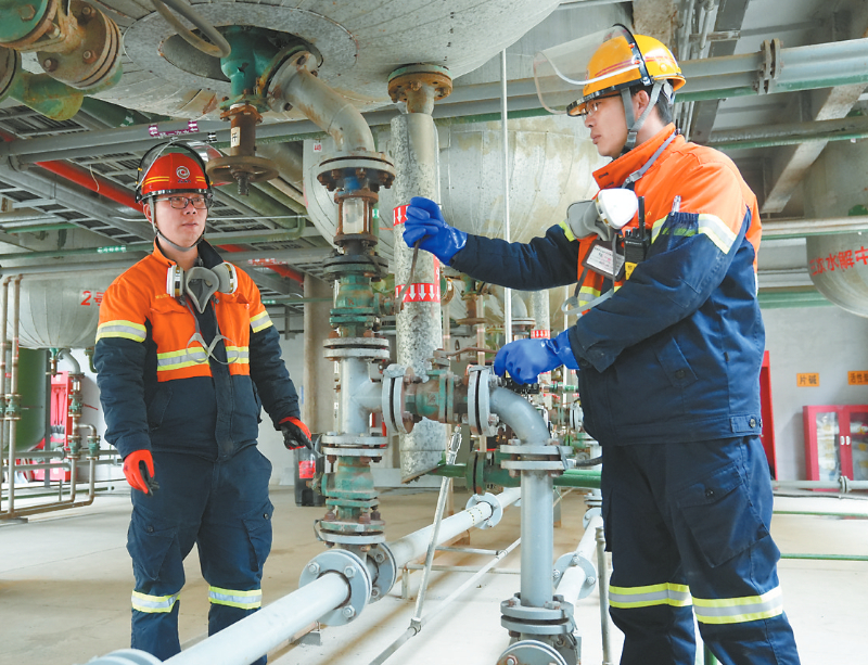 图为生产技术员检查阀门操作安全情况。