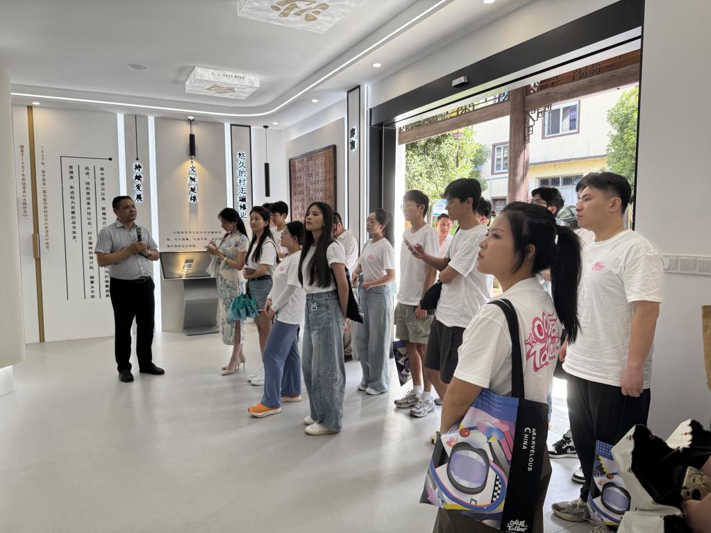 2025年8月7日,来自浙江全省各地的“00后”新时代理论宣讲团成员在浙江衢州白沙村参观村志馆。新华社记者 魏董华 摄
