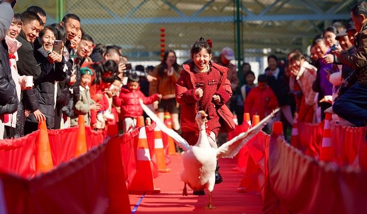 2025年1月29日,浙江衢州白沙村在村里健身广场上举办村运会。该村举办村运会已有近二十年历史。新华社发(衢州市委宣传部供图)