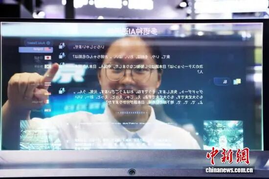 7月26日,一款多语种AI透明屏吸引参观者。当日,2025世界人工智能大会在上海开幕。 中新社记者 汤彦俊 摄