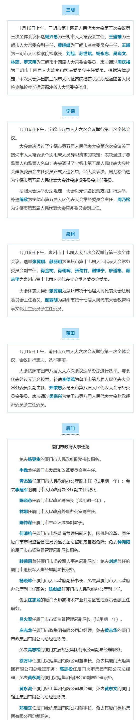 来源:三明市融媒体中心、宁德市广播电视台、泉州通客户端、湄洲日报社新媒体中心、厦门市人民政府网站
