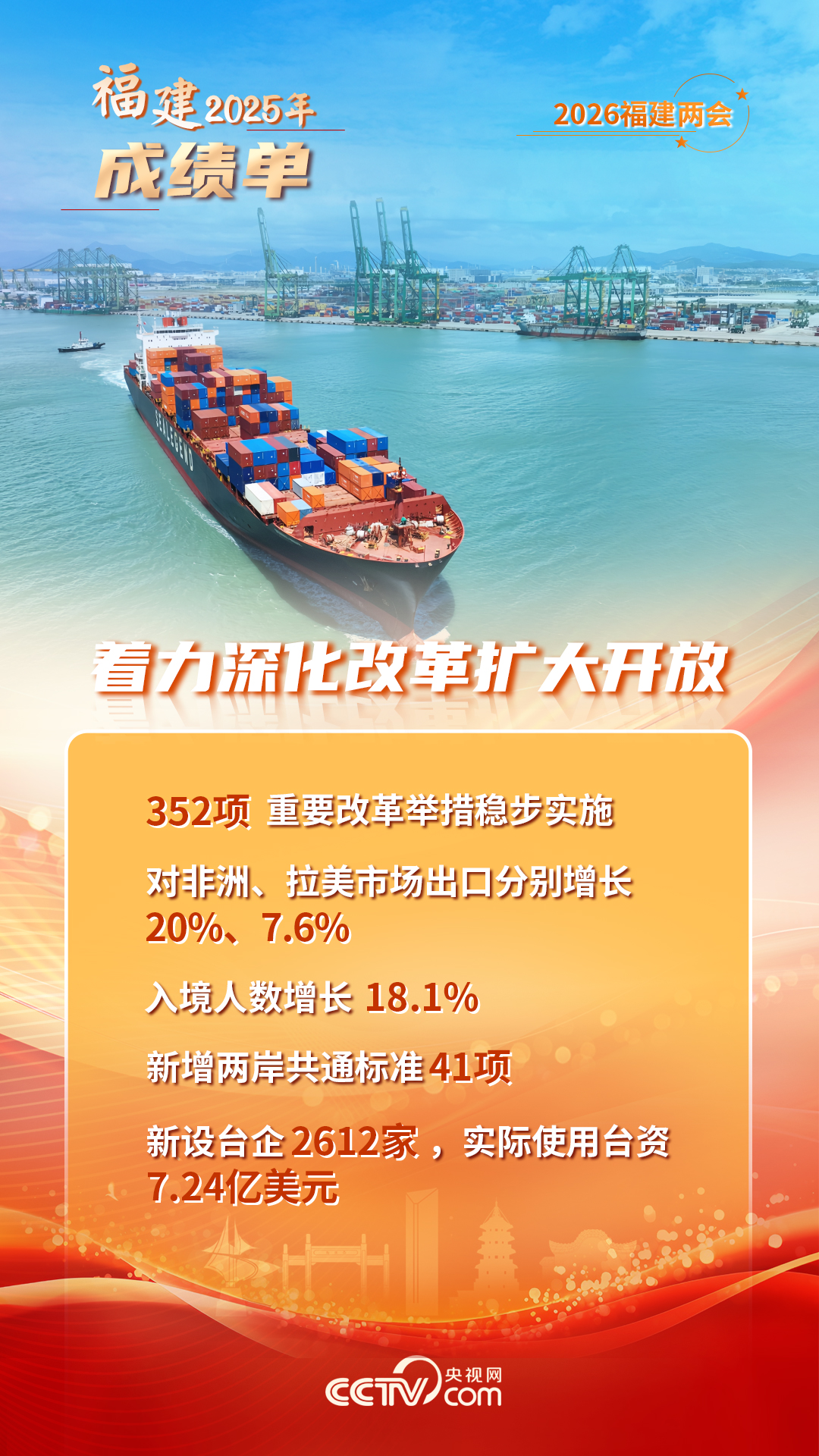 央视网消息 1月27日,福建省第十四届人民代表大会第四次会议开幕,福建省省长赵龙作政府工作报告。政府工作报告指出,2025年福建全省生产总值60199.45亿元、增长5%,产业转型升级步伐加快、改革开放向纵深突破、民生福祉持续提质扩面、生态环境质量稳居全国前列,中国式现代化福建实践迈出新的坚实步伐。一组海报,央视网带您速览2025年福建高质量发展答卷。(陈丽霞 庄媛媛 陈若岚) 上一篇 下一篇