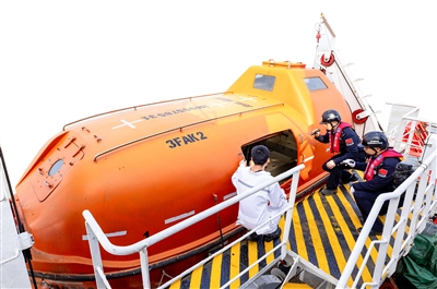 2月3日,宁德边检站移民管理警察在半潜船“希望之路”轮上开展船体检查。