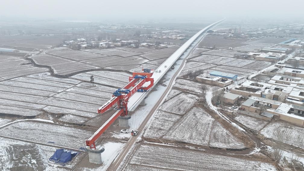 在中铁二十一局集团有限公司施工现场,架桥机正在作业。(马辰 摄)