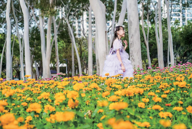 忠仑公园内约6000平方米大花百日草缤纷绽放。晨报拍客 罗秀玉 摄