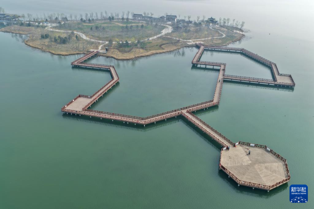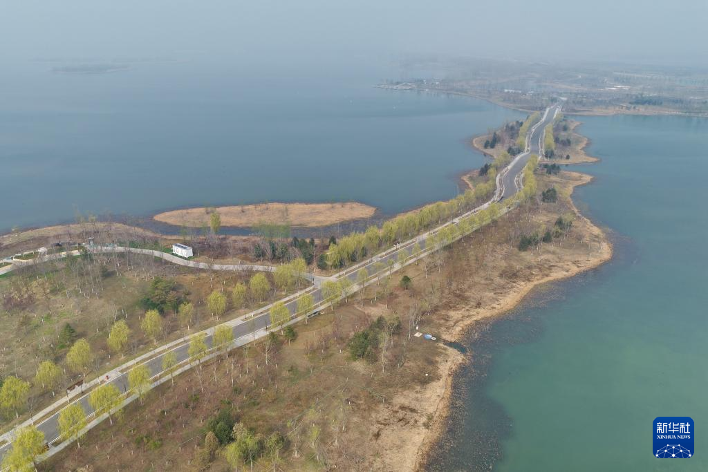 这是雄安新区白洋淀燕南堤(3月26日摄,无人机照片)。