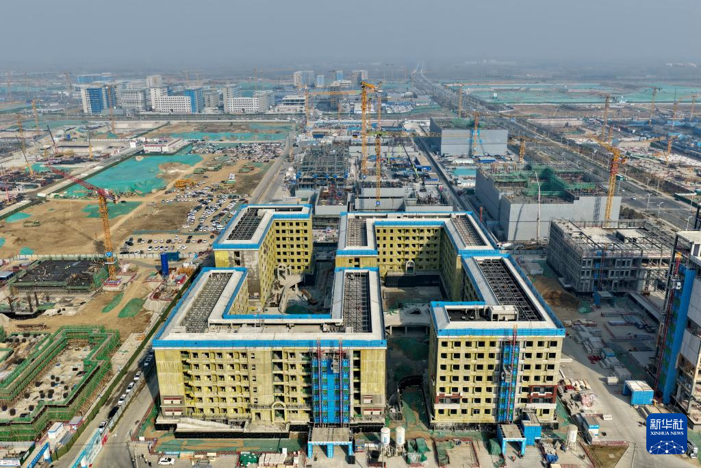 位于雄安新区启动区的雄安金融中心建设现场(3月25日摄,无人机照片)。