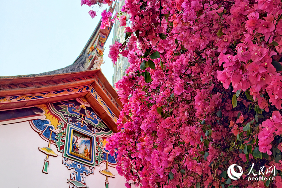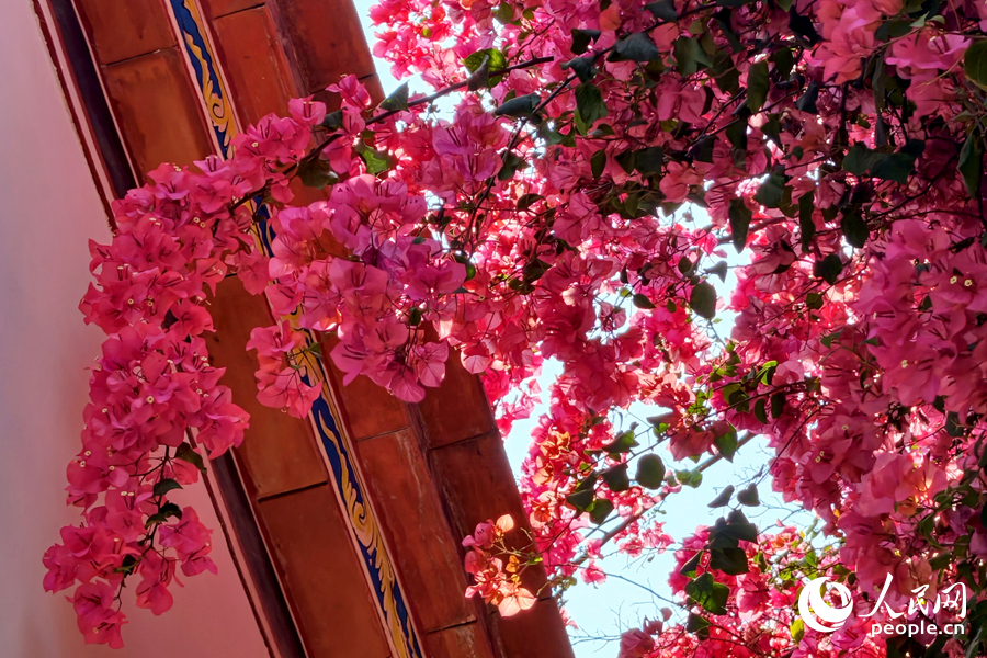 屋檐下的三角梅花枝招展,透着阳光格外娇艳。人民网记者 陈博摄