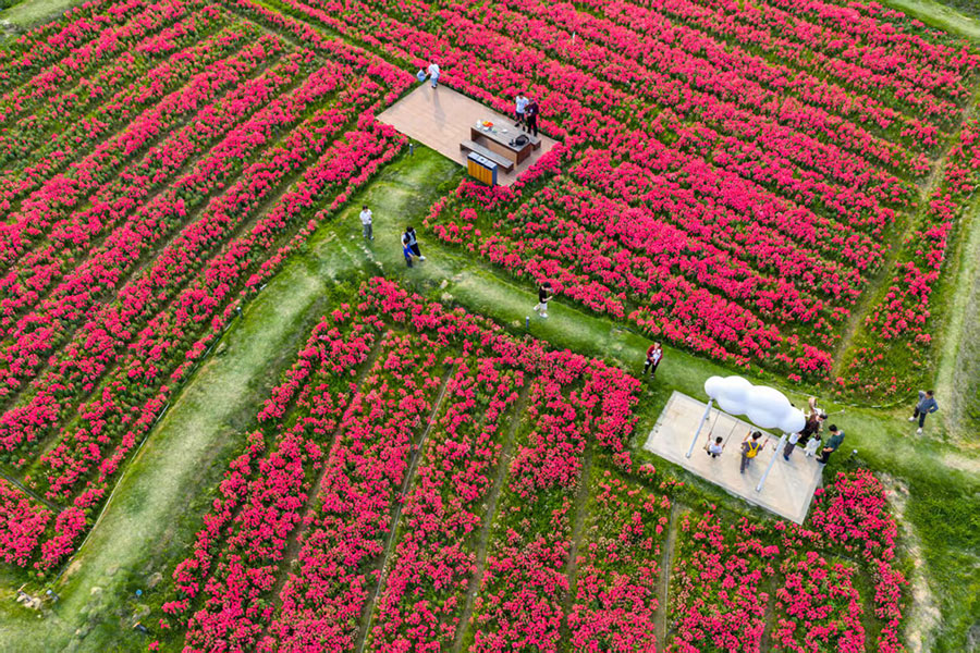 市民游客在花田中拍照打卡。人民网记者 焦艳摄