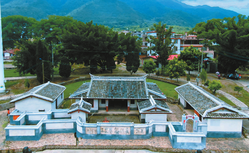 晏田祠位于永定区虎岗镇虎西村。1929年8月上旬,毛泽东偕夫人贺子珍等在粟裕的护送下,从上杭大洋坝来到虎岗,召集乡党政负责人、群众代表座谈,听取代表们的反映,了解虎岗的革命形势,给在座的代表指出了革命的前进方向。随后,一纵队派支队驻扎在虎岗,指导和支持虎岗的革命和建设发展。1930年12月15日,中共闽西特委、闽西苏维埃政府等党政军、政法、经济、文化机关单位迁驻虎岗后,毛泽东再次来到这里,入住晏田祠,一方面指导闽西特委和闽西苏维埃政府工作,另一方面到彭杨军校讲课,并视察红军兵工厂。晏田祠现为省级文物保护单位。(熊川 摄)