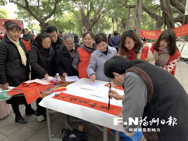 活动现场,福清市书协志愿者将浓浓的新春祝福凝聚笔端,一副副满载祝福、寓意吉祥的春联在纸上“生成”,村民们驻足围观,连连赞叹并有序领取。