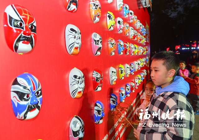 灯笼高挂、人头攒动,25日的活动现场热闹非凡。糟肉光饼、小箬礼饼、太平线面等闽侯特色美食亮相美食市集。10余位身着汉服的文化使者手持虎年主题大红灯笼,穿梭在民俗园的夜色中,与国潮灯笼长廊遥相呼应。脸谱墙前,游客在工作人员的指导下,给脸谱上色,并悬挂在脸谱墙上。小戏台上传来阵阵古筝声,演绎着年轻人广为传唱的流行歌曲,传统与潮流发生碰撞。