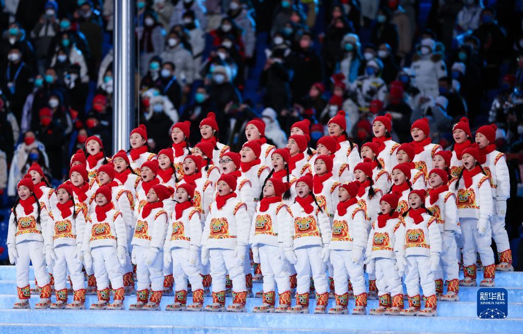 2月4日晚,第二十四届冬季奥林匹克运动会开幕式在北京国家体育场举行。这是“马兰花儿童合唱团”用希腊语在开幕式上歌唱。新华社记者 曹灿 摄