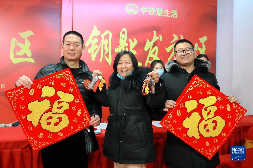 1月17日,即将入住雄安新区容东片区E组团安置房的居民展示钥匙。新华社发
