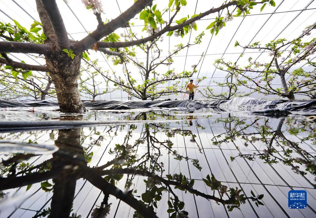 1月11日,河北省滦州市茨榆坨镇建民种植专业合作社的一名社员在大棚内浇水。新华社记者 杨世尧 摄