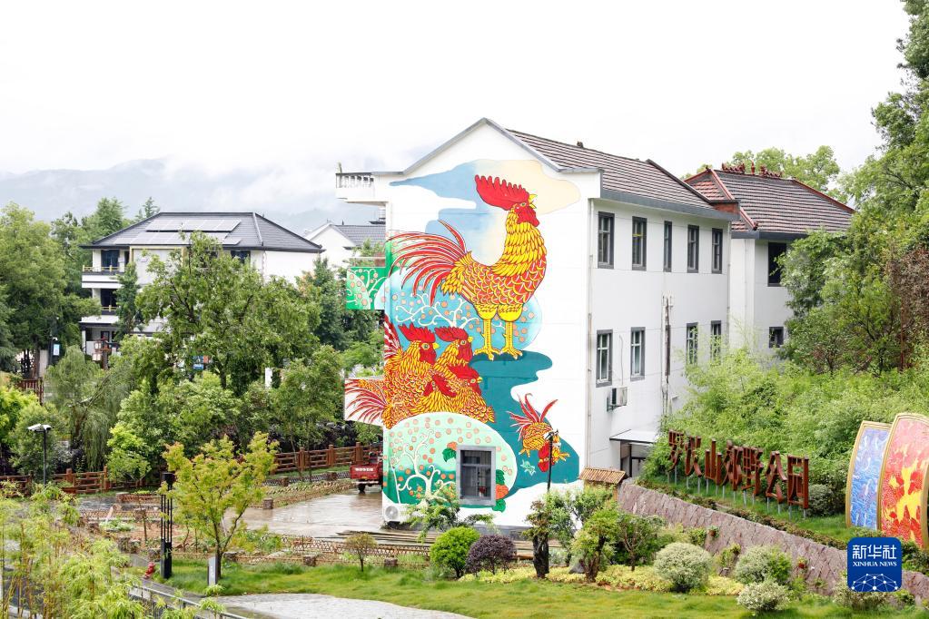这是浙江衢州市柯城区沟溪乡余东村建筑墙壁上的农民画(2021年5月11日摄)。新华社发