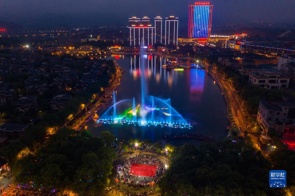 这是2021年6月4日拍摄的浙江省东阳市花园村夜景(无人机照片)。新华社记者 徐昱 摄