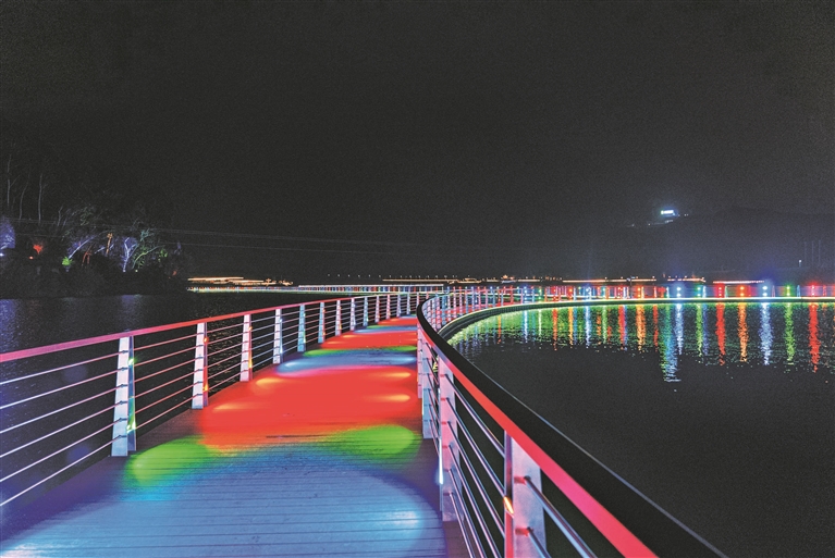 灯水相融、流光溢彩、璀璨夺目……今年元旦期间,古田县翠屏湖内湖环湖景观慢道正式开放,华美的夜景迅速抢占宁德网友的朋友圈,成为市民朋友的新晋“网红打卡点”。