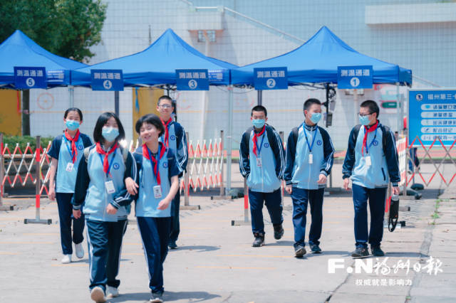 福州三十二中学生胸前挂着电子学生证入校。(福州三十二中供图)