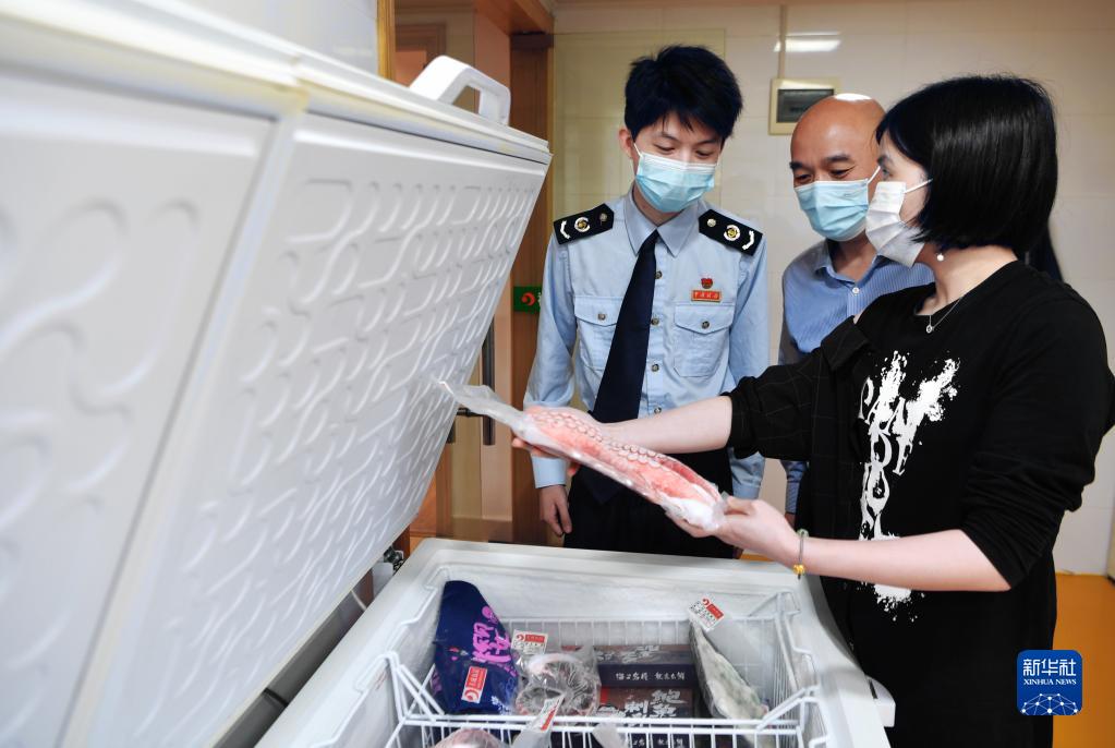 5月11日,在福州名成食品工业有限公司冷冻生产车间,国家税务总局福州经济技术开发区税务局工作人员在车间了解企业生产状况。