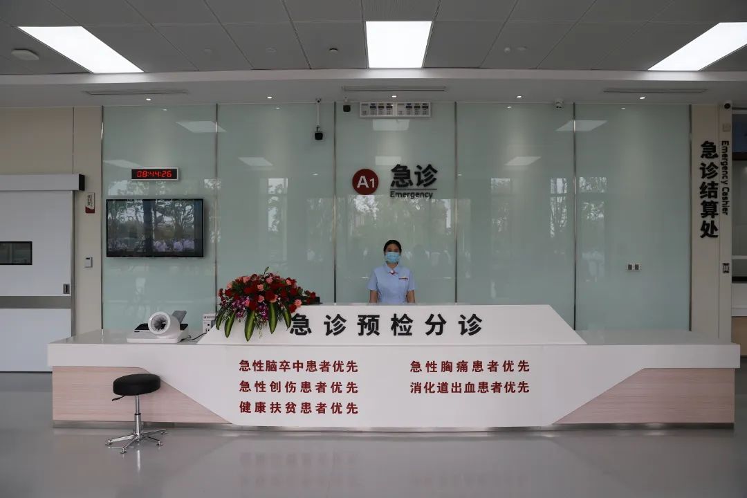 急诊医学中心内设有预检分诊台、急诊抢救室(床位12张)、急诊诊室(内、外、妇及特殊诊室)、急诊清创手术室、急诊溶栓室、急诊药房、急诊收费处、急诊检验、急诊超声、急诊CT、空中直升飞机救护平台等配套的急诊设施。未来陆续开放急诊重症监护室、急诊病房、急诊观察室、输液室。