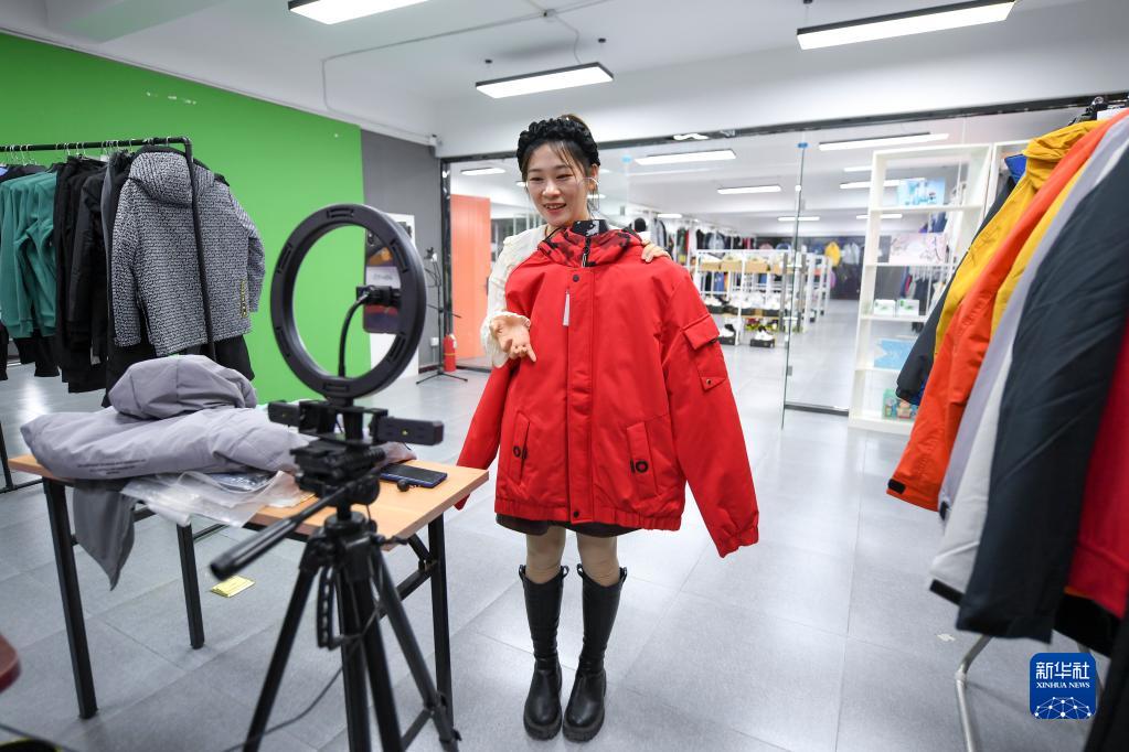12月9日,电商主播在狮城宁好电商网批(西部)运营基地直播带货。