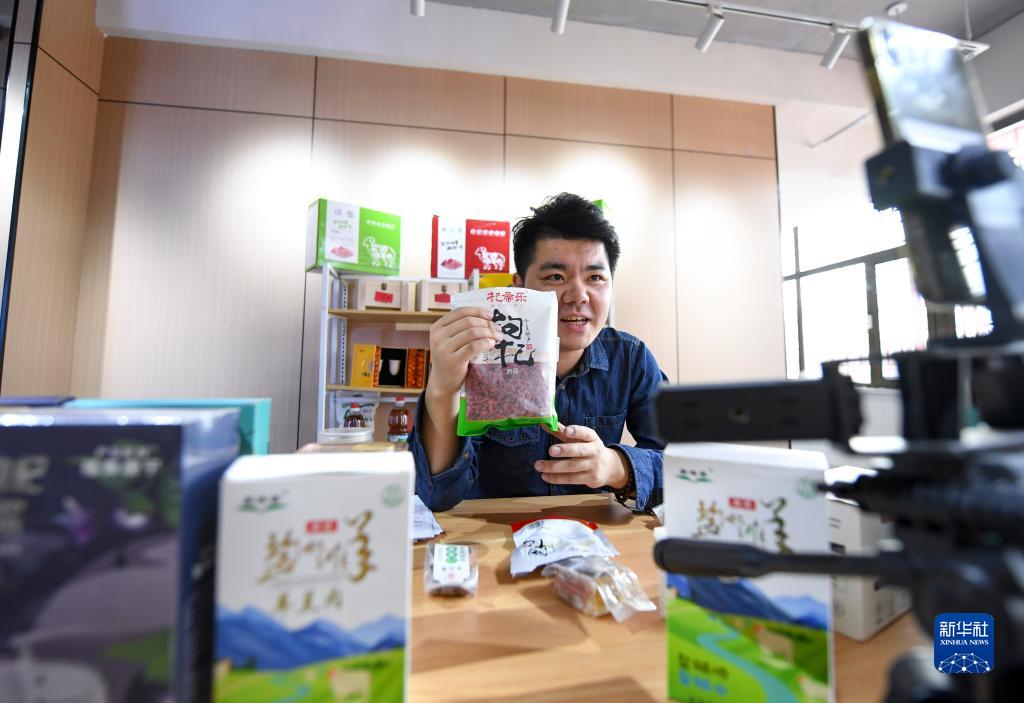 12月9日,电商主播在狮城宁好电商网批(西部)运营基地直播销售宁夏农特产品。