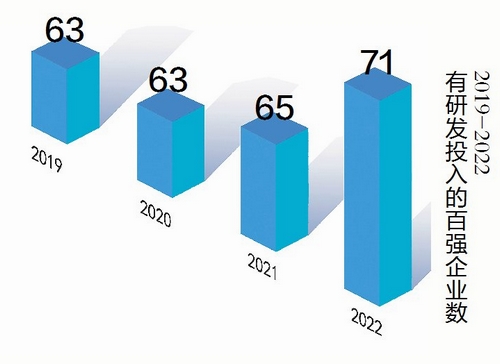 创新是企业的灵魂,榜单显示,2022厦门百强企业总研发投入178.1亿元,同比增加80.5%。71家企业有研发投入,总量、增速与有研发投入的企业数均达到历年新高。连续上榜的72家企业中,有48家企业连续4年有研发投入,其中有15家企业研发投入保持正增长。研发投入排名首位的亿联网络坚持“研发制胜”,自主品牌Yealink畅销欧美等140多个国家和地区,IP话机市场占有率全球第一,视频会议系统出货量全球第五。