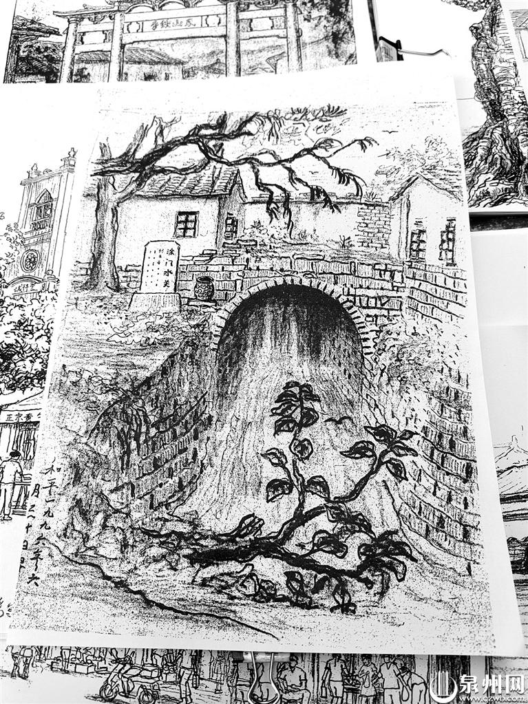 多年来,他已经画了上千张作品。在这些画作中,有著名的景点东西塔、西街、清源山,也有传统牌坊、旧道路等如今不复存在的景致。金鱼巷里的金鱼桥、涂门水关、五里亭的十八台阶……这些老泉州“物件”都在他的画作中留存了下来。“这些画里的地方有的现在已经不在了,我刚好以自己的方式和感觉将它们记录下来。”他翻看着文件夹里的一张张画作说道。他画画有着自己的一套原则,希望绘画具有生命力,“以图表文,以文达义”。在他的眼中,每一张画都有着自己的故事。