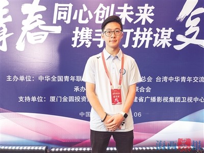 张博勋也是厦门台商协会台湾青年(人力资源)与产品营销委员会副主委,常与协会青年一起探讨,如何通过协会的力量让更多来发展的台青能落地。他建议,大陆台青在寻求自身发展机遇、向岛内亲友分享提供资讯的同时,可以创造更多台胞之间的交流机会,协助台胞参与大陆发展、两岸融合发展。“目前,这也正是我们在努力做的事情”。张博勋说道。(记者 陈翠仙 潘薇)