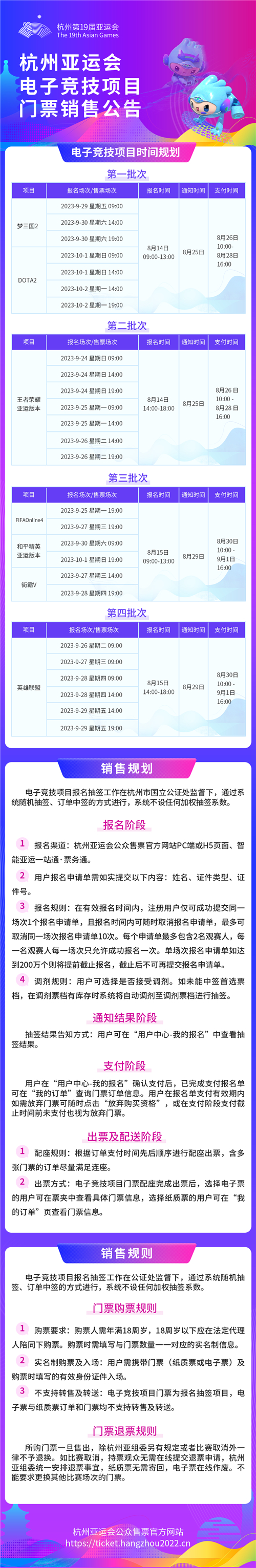 杭州亚运会电子竞技项目门票将于8月14日陆续启动销售。