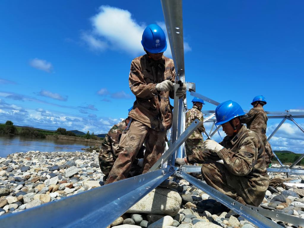 “放导线最难点是横跨海浪河的位置,由于天气多变和河水过深等自然因素,无人机和重型机械无法参与到放导线作业中。”现场负责人孙绍英说。