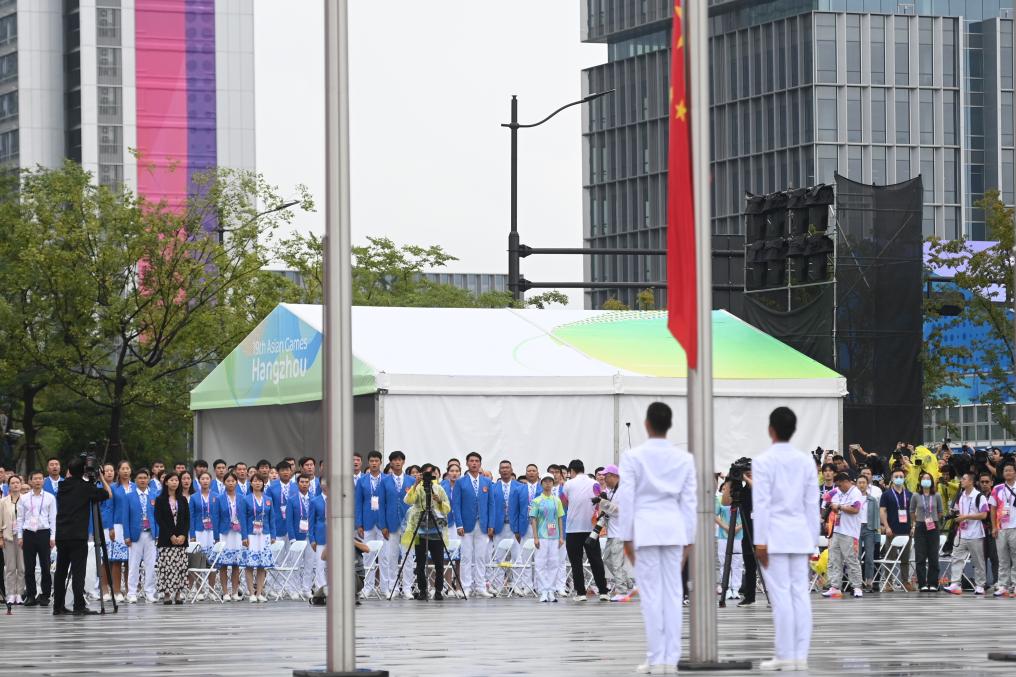 这是9月16日拍摄的中国体育代表团升旗仪式。新华社记者 黄宗治 摄