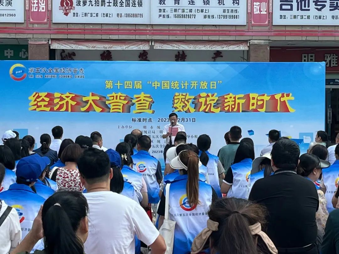 本届开放日的主题为“经济大普查 数说新时代”,旨在以此次活动为契机,宣传“五经普”的重大意义、普查内容、方式、特点等,展现经济普查服务国家发展的重要作用。 活动现场,我市企业代表作了发言,表示将积极支持和配合开展好“五经普”工作。市民手持宣传道具参与拍摄“我为五经普代言”小视频,并积极参与“五经普”、民生统计知识有奖问答。现场还精心布置了主题拱门、宣传展板等,向群众发放宣传资料、宣讲普查知识、提供现场咨询,同时,滚动播放“五经普”宣传视频的宣传车,在市区主要街道上巡游宣传和驻点停放,以声形结合的方式,对沿途和宣传点的行人、商铺和企业进行流动宣传,达到“行驶一程、宣传一路”的良好效果,进一步提升了社会公众和统计调查对象对“五经普”的知晓度、支持度和配合度。