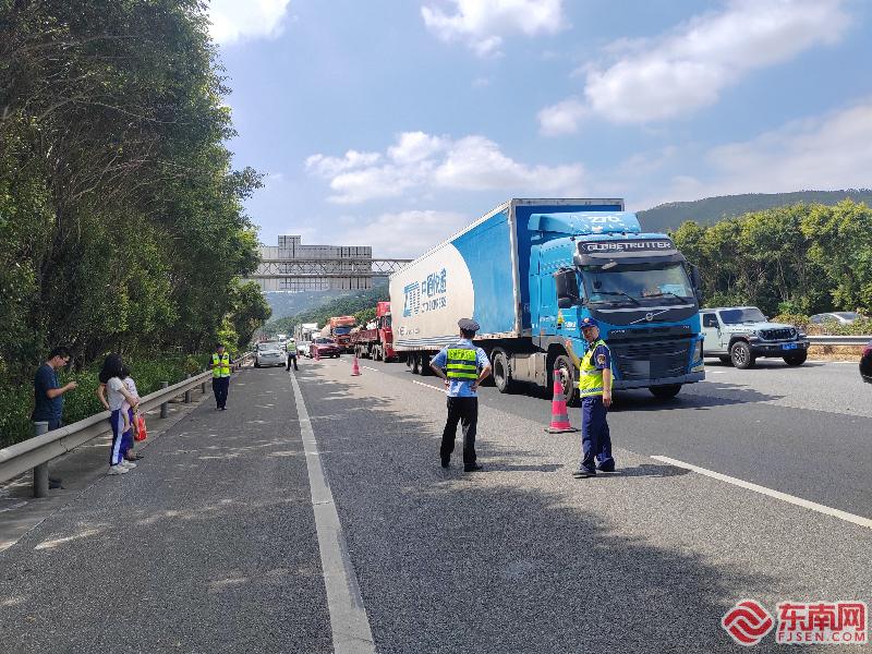两节期间,福建高速执法队伍坚守在岗,尽心尽责,高效处置各类应急突发事件,及时为过往车户群众排忧解难,全力营造安全畅通的节日出行环境。