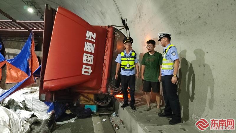 9月30日14时50分,宁德高速行政执法支队一大队福鼎东中队接到通报,甬莞高速A道青山隧道内有货车侧翻,占用两个车道,且有人员卡在车厢内,宁德高速执法员第一时间赶赴现场。据统计,自假期开始甬莞高速闽浙-福鼎东段断面流量超过26000辆次,车流量较大,交通事故需火速处置,才能减少高速公路的拥堵。