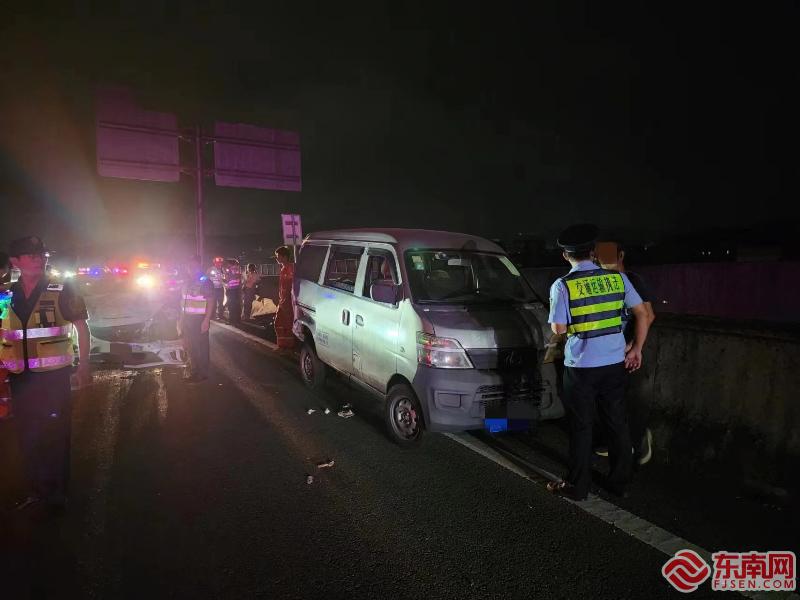 10月1日22时许,在双安高速南安北出口匝道处,发生一起小车追尾面包车的事故,泉州高速执法支队安溪中队接高速路网中心转警后,联系相关部门联合处置,并组织执法员赶赴现场。
