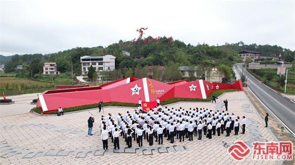 10月9日,宁化县淮土镇凤凰山村情忆园广场,秋风拂拂,在庄严的红旗旗阵前,百余名党员领导干部面向鲜红的党旗,重温入党誓词。宁化县委常委会主题教育读书班学员还前往凤凰山红军街参观考察,追寻红色足迹,重走长征路。