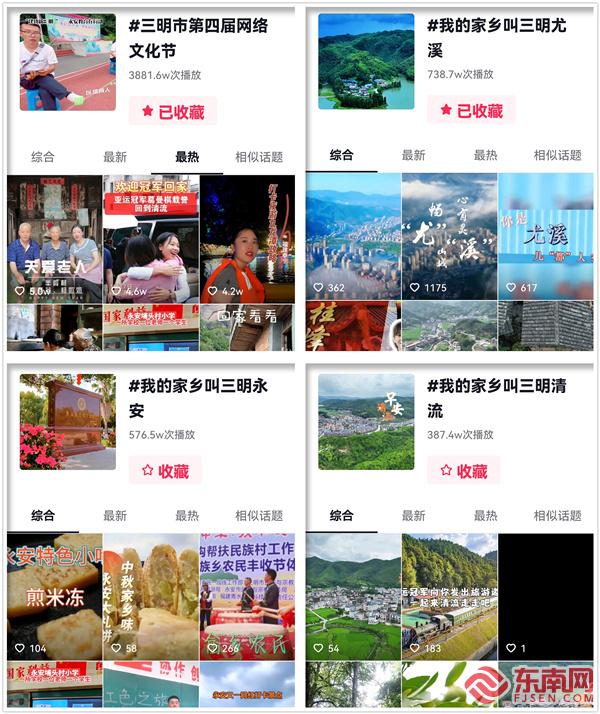 今年6月份,三明市第四届网络文化节自启动以来,按照“奋进新三明、网信新力量、文明新生活”三个主题篇章,在全市组织开展一系列内容健康、形式活泼、互动有序的网络文化活动。其间,在“网信三明”官方抖音号上线之际,三明市委网信办同步发起#三明市第四届网络文化节#、#明企话高质量发展#、#我的家乡叫三明#等互动话题,截至目前,参与量已突破5800万人次。