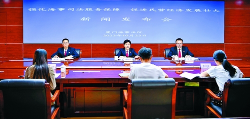 发挥海事审判职能,护航民营经济发展。昨日,厦门海事法院召开新闻发布会,向社会公众介绍由该院制定的《关于强化海事司法服务保障 促进民营经济发展壮大的工作意见》(以下简称《工作意见》),并发布相关典型案例。