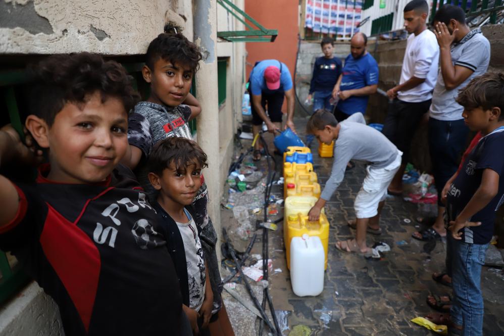 10月26日,人们在加沙地带南部城市汗尤尼斯街头打水。新华社发(里泽克·阿卜杜勒贾瓦德摄)