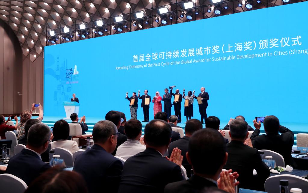 全球可持续发展城市奖(上海奖)颁奖活动暨2023年世界城市日中国主场活动开幕式当日在上海举行,获得“上海奖”的5个城市包括澳大利亚布里斯班、中国福州、乌干达坎帕拉、马来西亚槟城乔治市以及巴西萨尔瓦多。