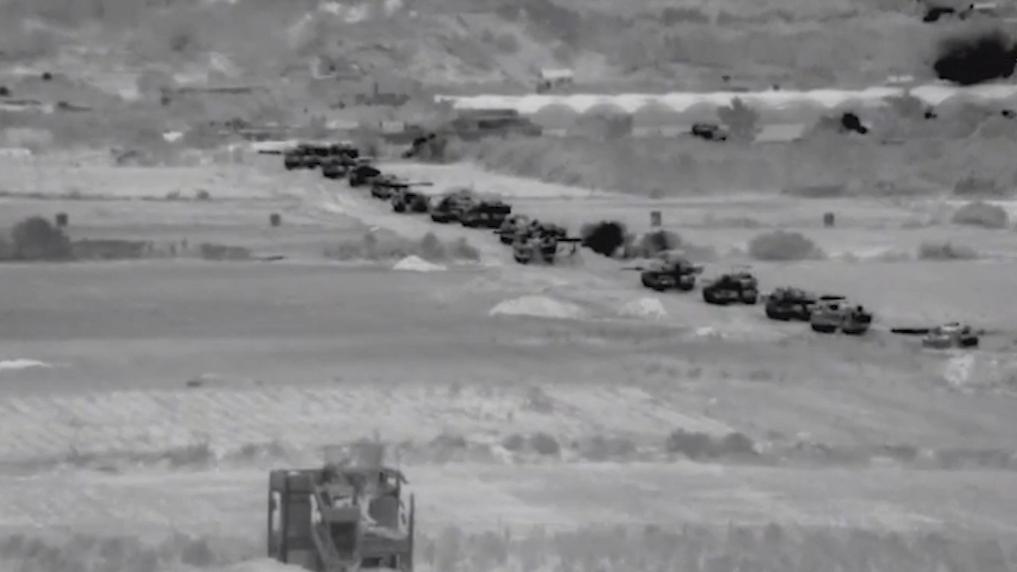 这张从以色列国防军发布视频中截取的图片显示,10月27日晚,以军进入加沙地带开展地面行动。 新华社发