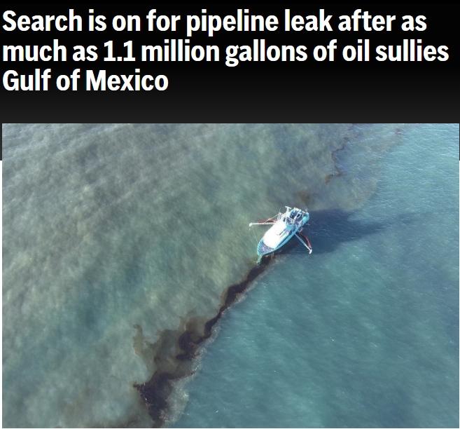 另据路透社报道,美国国家运输安全委员会(NTSB)表示,当前已派出一个四人小组进行安全调查,以确定漏油原因。几个联邦、州和地方机构也在调查泄漏的来源,美国海岸警卫队负责领导清理行动。